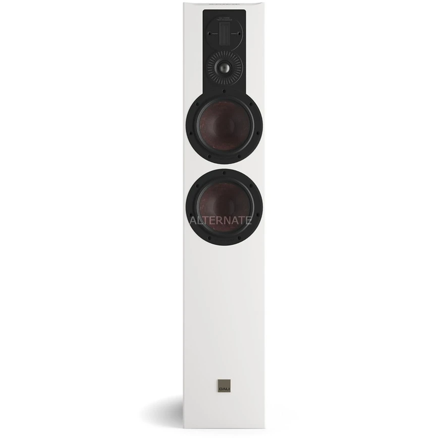 Auffälligstes Merkmal des schlanken Standlautsprechers OPTICON 6 MK2 ist der verbaute Hybrid-Hochtöner. Diese aus einer Kalotte und einem Bändchen bestehende Kombination gibt hohe Frequenzen deutlich detailreicher wieder. Der, 29 mm große Kalotte ist zusammen mit dem 17 × 45 mm großen Bändchenelement integriert. Bässe und Mitten werden bei der OPTICON 6 MK2 durch zwei 165 mm (6 ½ “)-Holzfasermembranen mit SMC-Magnetsystem abgedeckt. Das untere dieser beiden Chassis überträgt nur einen Teil des Mitteltonbereichs. Die OPTICON 6 MK2 lässt sich bei Bedarf per Bi-Wiring anschließen, sodass Tiefmitteltöner und Hochfrequenzmodul unabhängig über zwei Lautsprecherkabel angesteuert werden können. Mit zwei Tiefmitteltönern, den Dual Flare Bassreflexrohren und dem größeren Innenvolumen eines Standlautsprechers agiert die OPTICON 6 MK2 im Bassbereich bedeutend kraftvoll. Dieser kräftigere Bass verbindet sich mit der brillanten Klarheit in den Mitten und den funkelnden Höhen des DALI Hybrid-Hochtöners zu einem überzeugenden Ganzen.