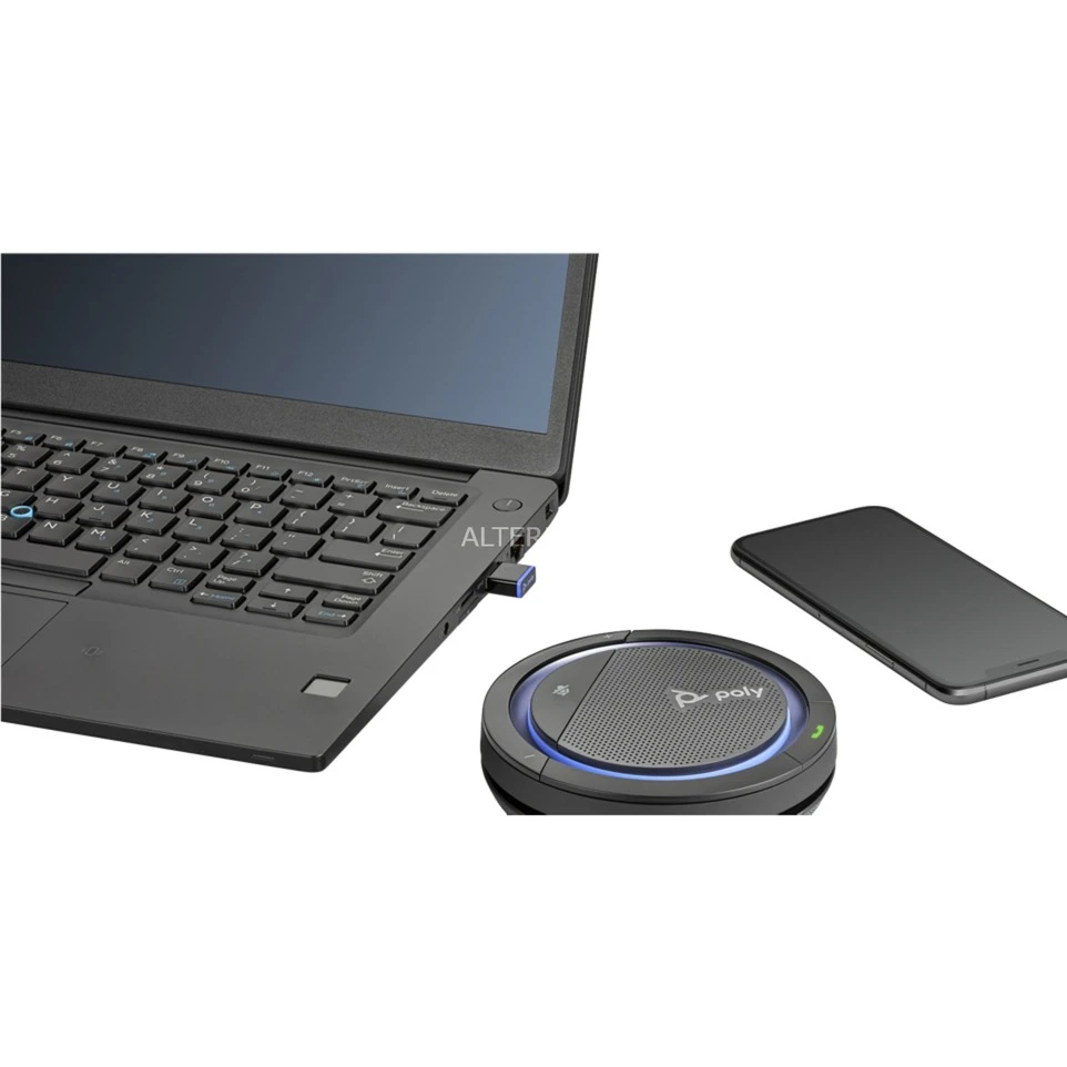 Der Plantronics Calisto 5300-M ist ein kompakter und vielseitiger Konferenz-Lautsprecher, der sich drahtlos über den USB-A Dongle oder per Bluetooth mit anderen Geräten koppeln lässt. Der eingebaute Akku des Calisto 5300 reicht für bis zu 16 Stunden Sprechzeit aus, eine volle Aufladung gelingt dabei in nur 3,5 Stunden. Der Calisto 5300-M besitzt eingebaute, omnidirektionale MEMS-Mikrofone sowie 360° Lautsprecher um jederzeit ein klares Hörerlebnis sicher zu stellen. Das Calisto 5300-M ist für Microsoft Teams zertifiziert.