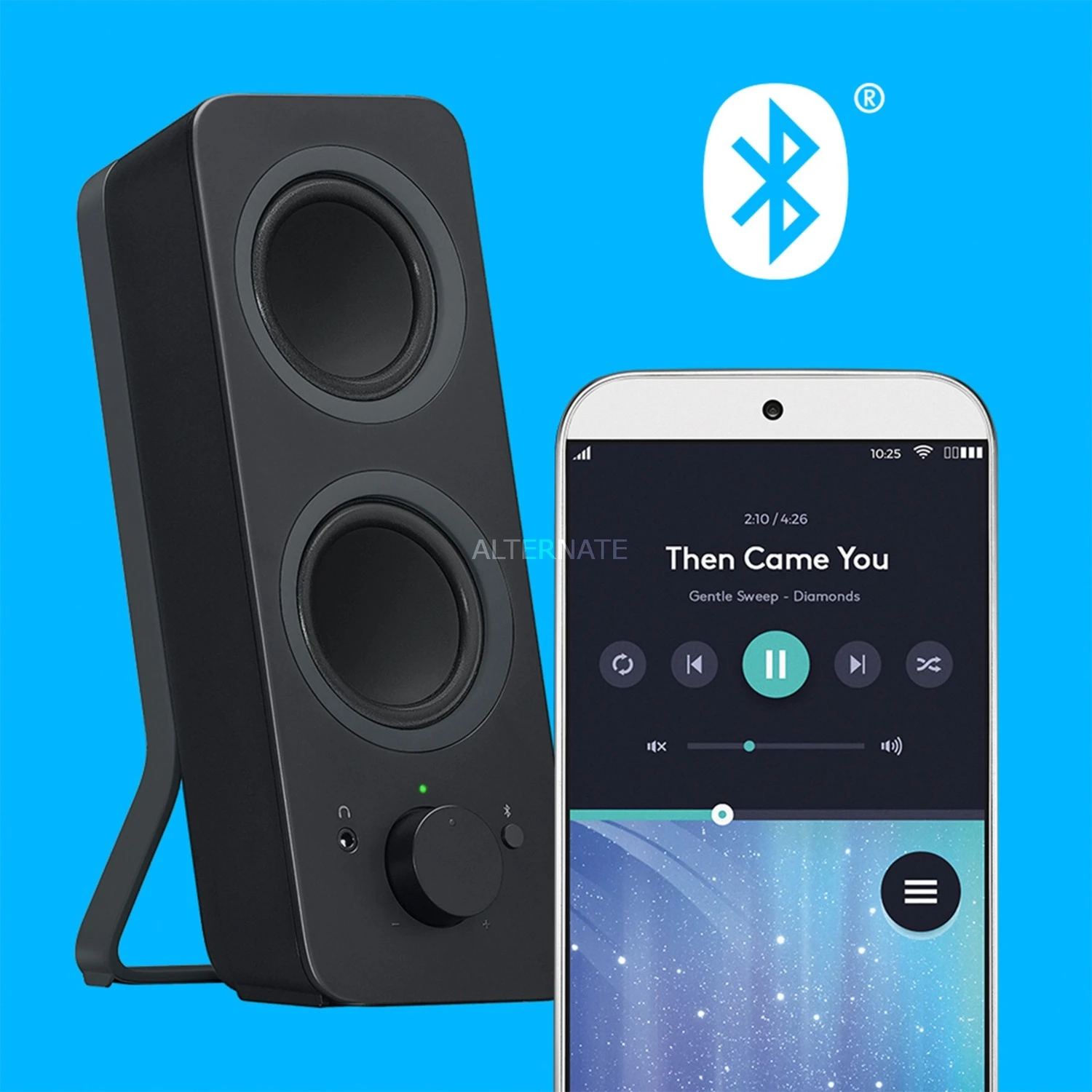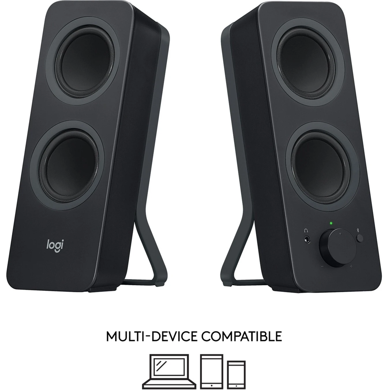 Die Z207 PC-Lautsprecher bieten einen hervorragenden Stereo-Sound mit insgesamt 10 W (RMS) Leistung. Zur Verbindung mit dem PC oder anderen Geräten steht Bluetooth in Version 4.1 zur Verfügung oder man verwendet den 3,5-mm Klinkenanschluss. Die vielseitigen Lautsprecher lassen sich einzeln voneinander positionieren um den bestmöglichen Klang zu erreichen. Die gesamte Steuerung und Einstellung erfolgt über den rechten Lautsprecher.